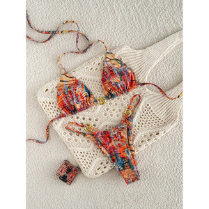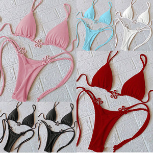 ชุดว่ายน้ำบิกินี่สามเหลี่ยมเซ็กซี่ลายดอกไม้ใหม่ชุดว่ายน้ำสาวๆสีทึบ